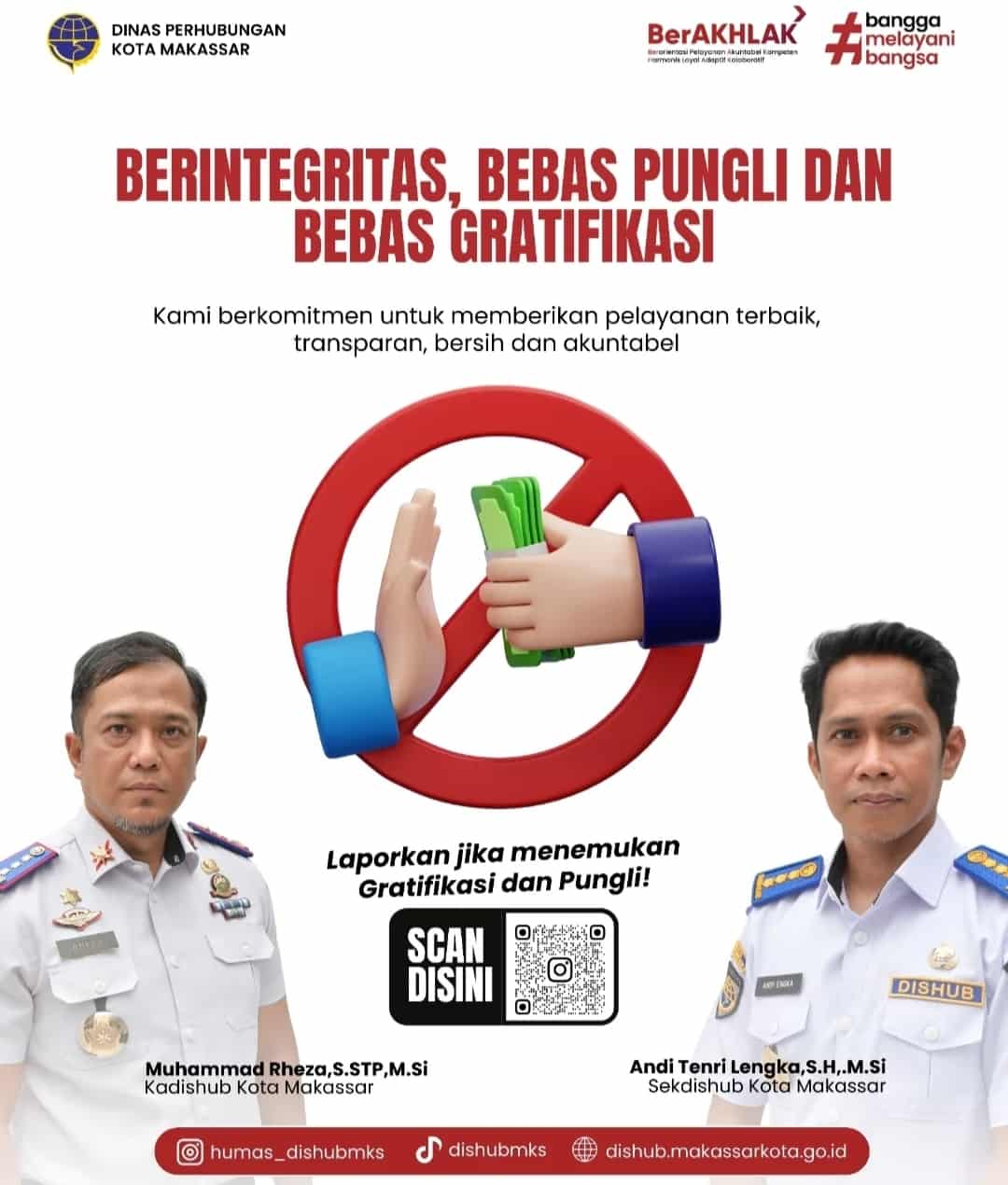 Rastranews.id, Makassar – Dinas Perhubungan (Dishub) Kota Makassar menegaskan komitmennya untuk memberikan pelayanan publik yang bersih, transparan, dan bebas dari praktik pungutan liar (pungli) maupun gratifikasi.
