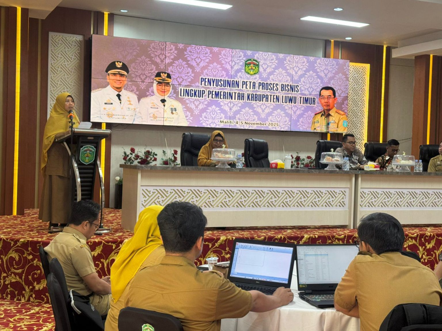 Rastranews.id, Lutim – Sebagai tindak lanjut dari ketentuan Peraturan Menteri PANRB Nomor 19 Tahun 2018 tentang Penyusunan Peta Proses Bisnis Instansi Pemerintah, Pemerintah Kabupaten Luwu Timur melaksanakan Penyusunan Peta Proses Bisnis (Probis), di Aula Sasana Praja Kantor Bupati, Selasa (4/10/2025).