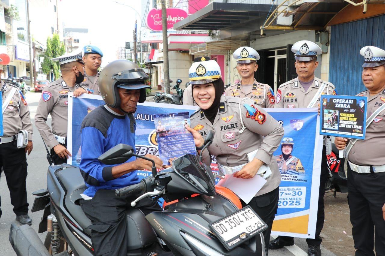 Rastranews.id, Makassar –Pelaksanaan Operasi Kepolisian Mandiri Kewilayahan Zebra Pallawa 2025 telah memasuki hari ke-9, Satlantas Polres Pelabuhan Makassar kembali turun ke lapangan sosialisasi keselamatan berlalu lintas, di Jl. Riburane, Kota Makassar, Selasa (25/11/2025).