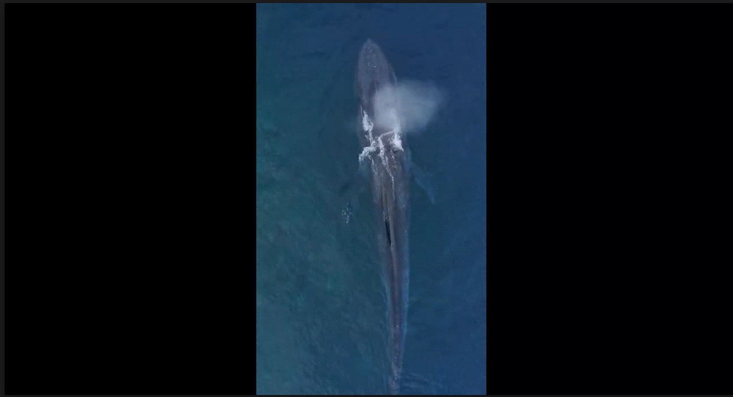 “saya terbangkan drone kira-kira sekitar Jarak 30 meter dari bibir pantai, dan terlihat dengan jelas penampakan Mamalia Laut berukuran besar ini. awalnya, saya liat seperti kapal selam namun setelah diperhatikan rupanya Paus Biru,” ungkapnya.