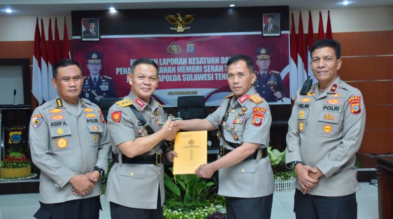 Rastranews.id, Palu – Kepolisian Daerah (Polda) Sulawesi Tengah menggelar kegiatan paparan laporan kesatuan dan penandatanganan memori serah terima jabatan Kapolda Sulteng di Aula Rupatama, Senin (3/11/2025).