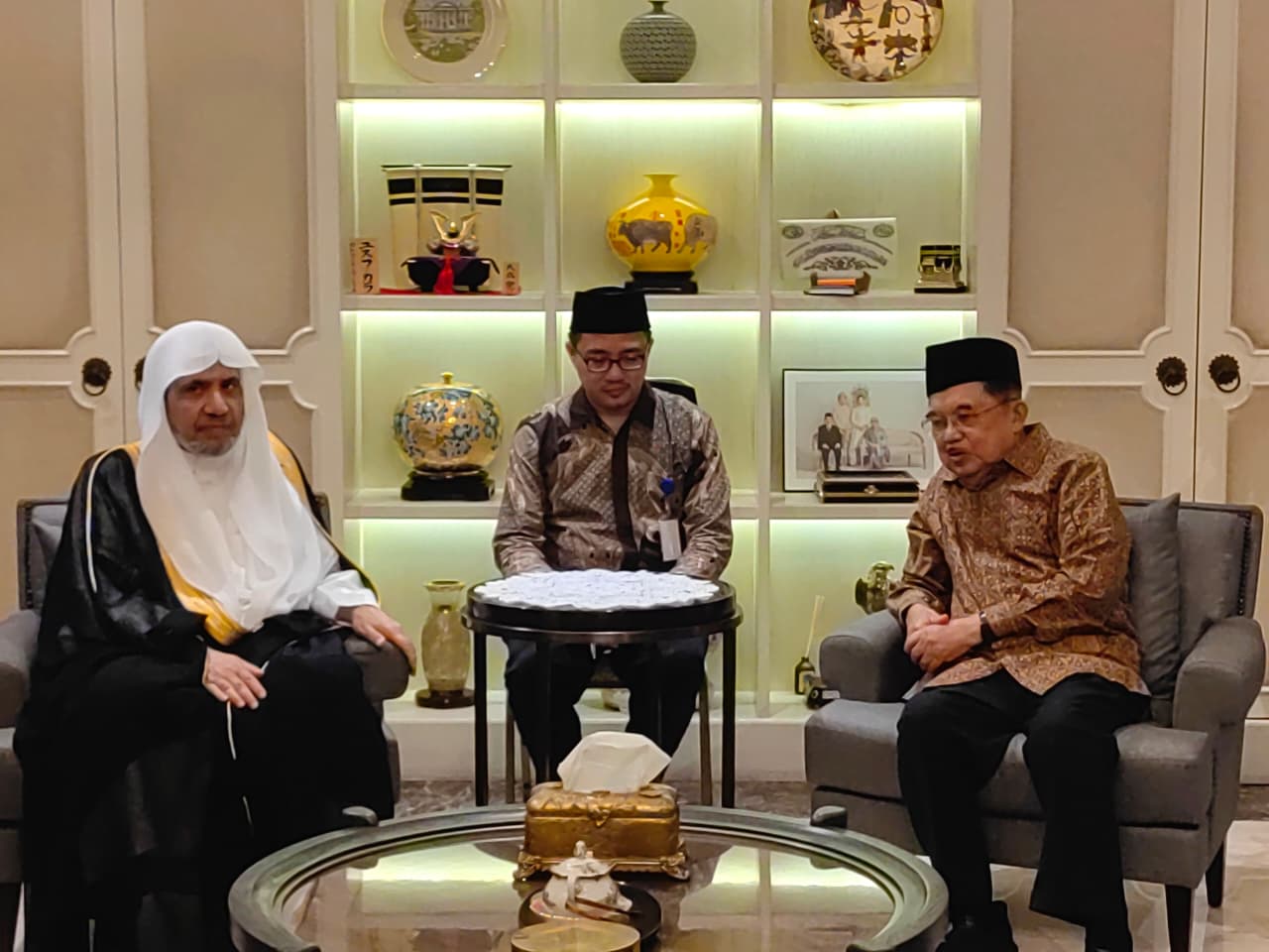 Rastranews.id, Jakarta – Ketua Umum Dewan Masjid Indonesia (DMI), Jusuf Kalla, menerima Sekretaris Jenderal Liga Muslim Dunia (Rabithah Al-Alam Al-Islami), Syaikh Mohammad Abdulkarim Al-Issa, di kediaman pribadinya di Jalan Brawijaya, Jakarta Selatan, Minggu malam (7/12/2025).