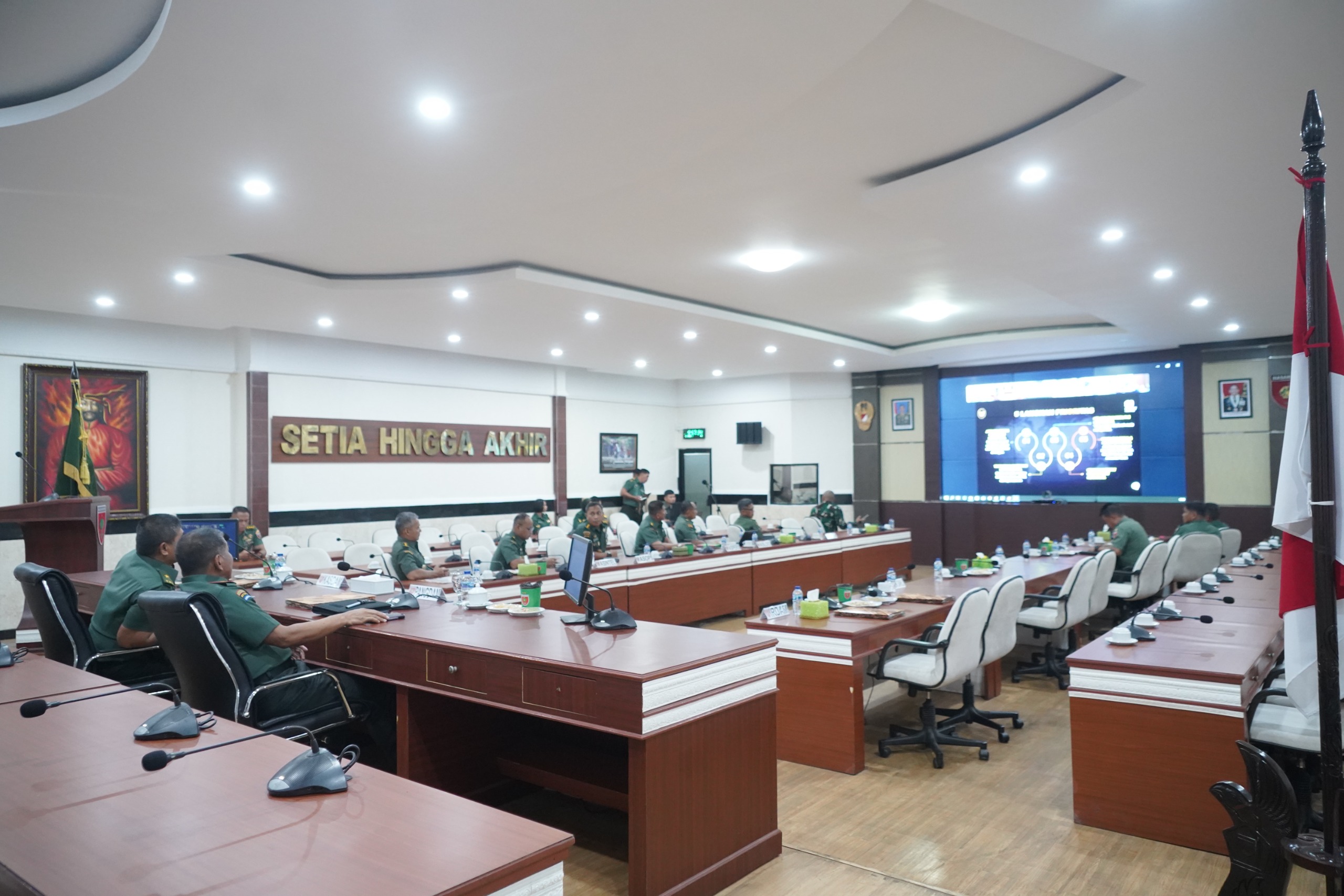 Rastranews.id, Makassar – Pangdam XIV/Hasanuddin, Mayjen TNI Bangun Nawoko didampingi sejumlah Pejabat Utama Kodam mengikuti video conference (vicon) bersama Menteri Dalam Negeri (Mendagri) RI Prof. Drs. H. Muhammad Tito Karnavian, di Ruang Bina Yudha, Makodam, Jl. Urip Sumoharjo, Kota Makassar, Senin (1/12/2025).