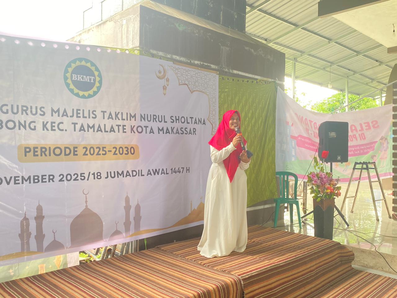 Pengukuhan dilakukan oleh Ketua Badan Kontak Majelis Taklim (BKMT) Kecamatan Tamalate, Dra. Hj. Sukaena, dan dihadiri oleh sejumlah tokoh masyarakat, di antaranya Ketua RW 011 Andi Muhajirin, Ketua RT 04 Zamzuri, Ketua Pengurus Masjid Nurul Solthana Iwan Kholid, serta para jamaah dan warga sekitar.