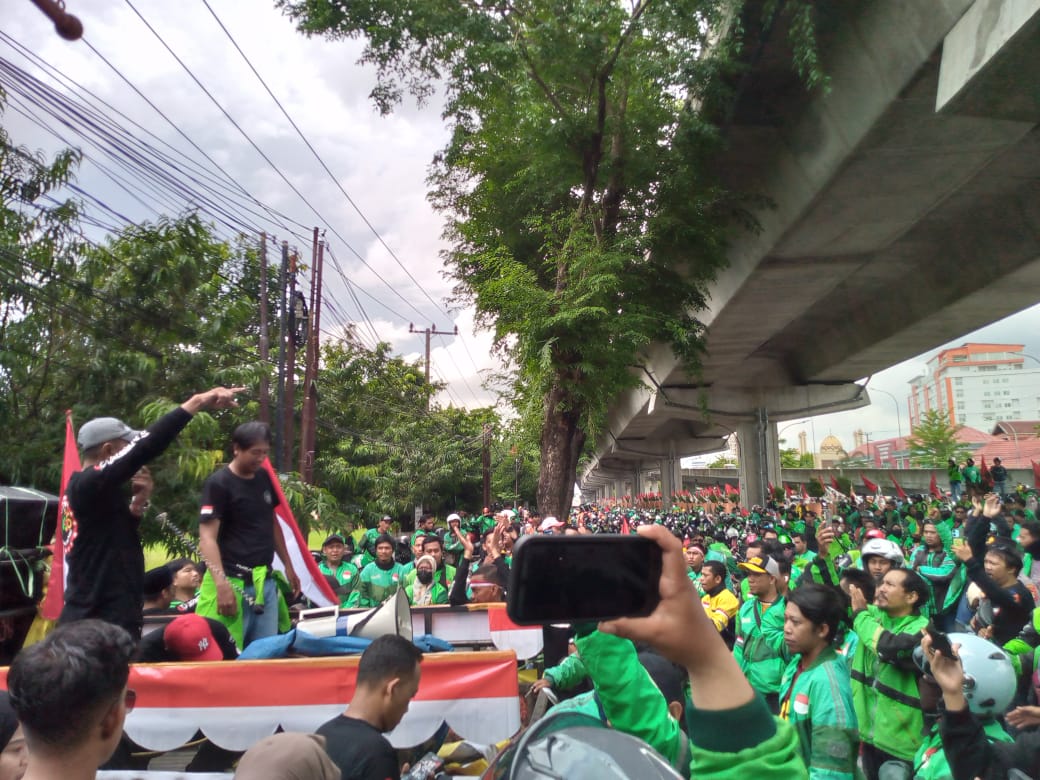 Perwakilan Grab Sektor Sulawesi (GSS), Kadri, menegaskan bahwa aksi ini merupakan bentuk penolakan terhadap wacana penetapan ojol menjadi karyawan tetap.