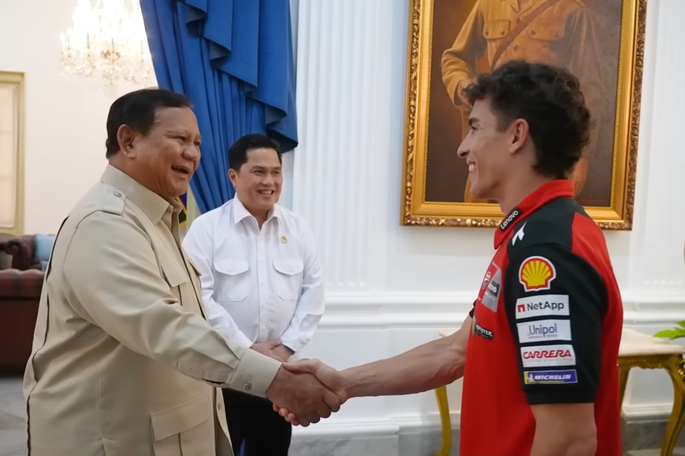 Rastranews.id, Jakarta – Presiden Prabowo Subianto menerima kunjungan juara dunia MotoGP Marc Marquez bersama dua pembalap muda Indonesia, Mario Aji dan Veda Ega Pratama, di Istana Merdeka, Jakarta, pada Selasa (30/9/2025).