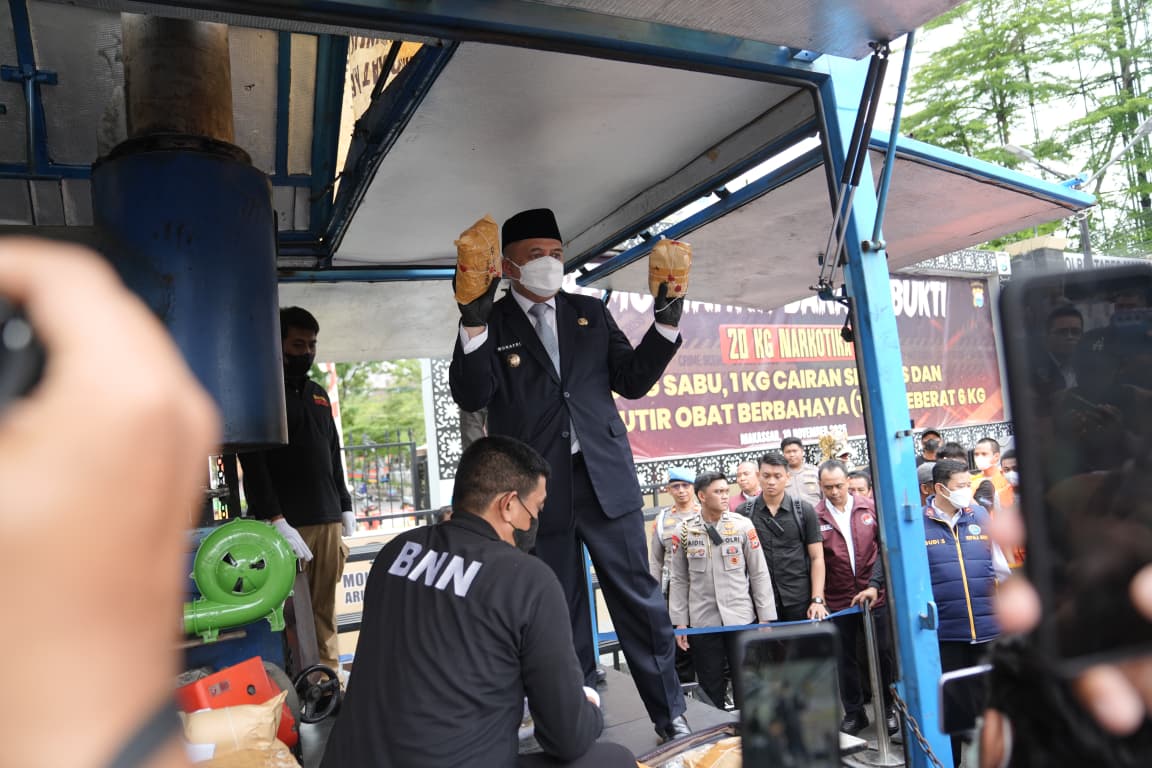 “Atas nama Pemerintah Kota Makassar, saya mengucapkan terima kasih atas kerja keras pihak Kepolisian dan BNN dalam memerangi narkoba. Kami akan terus bersama-sama dengan seluruh pihak agar penyalahgunaan, peredaran, dan pemakai narkoba tidak bisa hidup nyaman di Kota Makassar,” tegas Munafri.