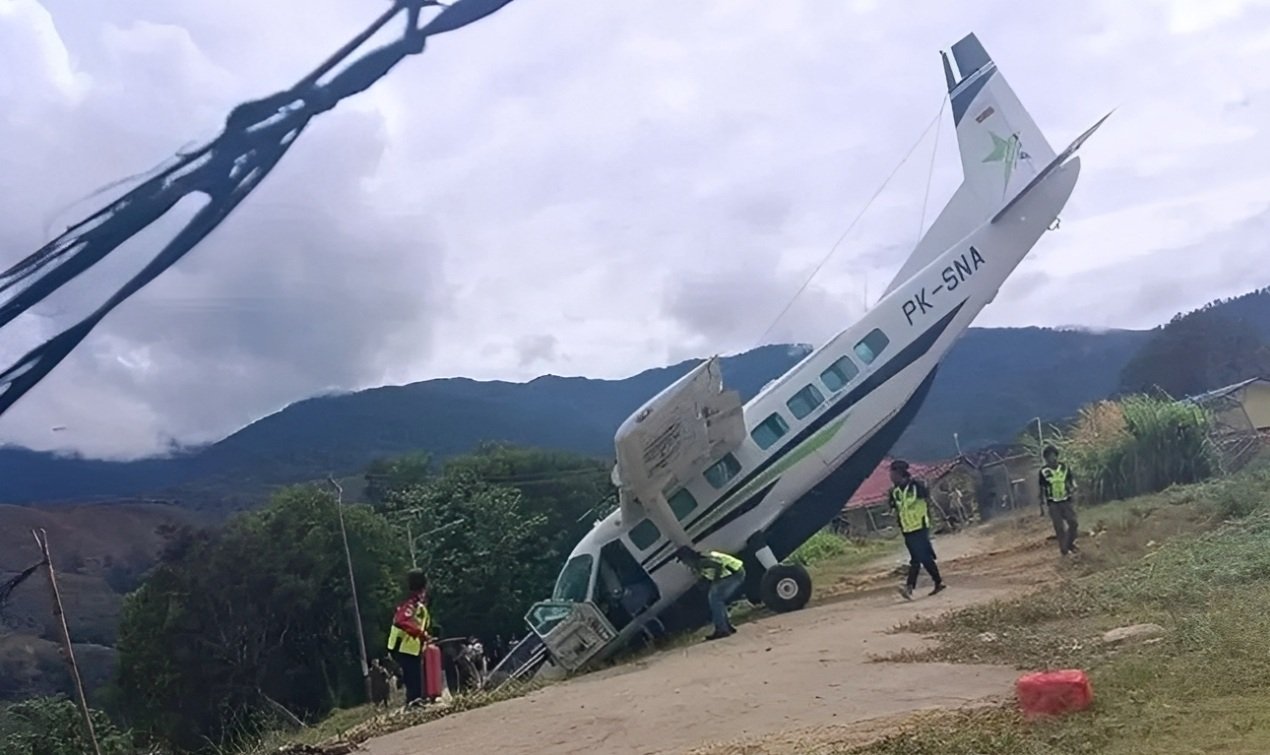 Rastranews.id, Lanny Jaya – Pesawat milik maskapai penerbangan Smart Air bernomor registrasi PK-SNA tergelincir dan keluar landasan di Bandara Tiom, Distrik Olome, Kampung Kurulu, Kabupaten Lanny Jaya, Papua Pegunungan, pada Sabtu (11/10/2025).