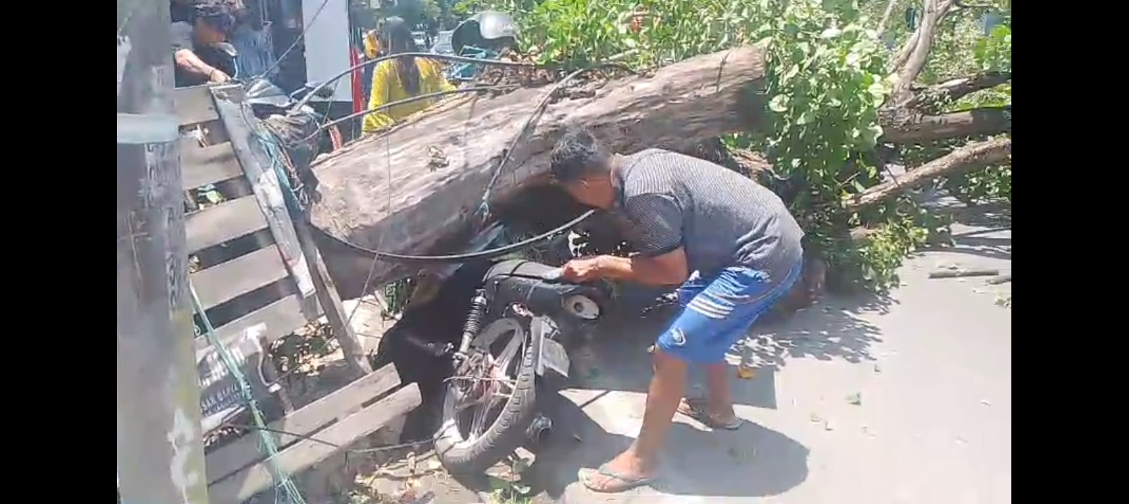 “Tiba-tiba tumbang begitu dan betul ada satu unit kendaraan roda dua yang terparkir tertimpa,” katanya.