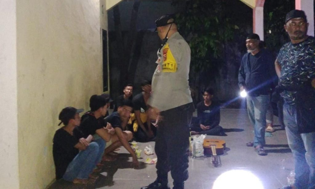Petugas gabungan yang mendatangi lokasi mengamankan sejumlah pemuda yang sedang mengonsumsi miras jenis tuak (ballo) dan wiski botolan.