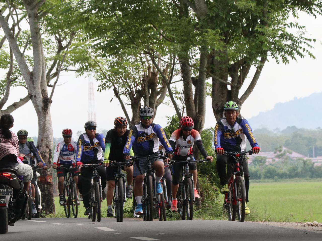 Dengan mengambil start dari Rujab Dansat Brimob Polda Sulsel, rombongan yang berjumlah 35 orang tersebut bersepeda menuju ke Pattalassang, Kabupaten Gowa.