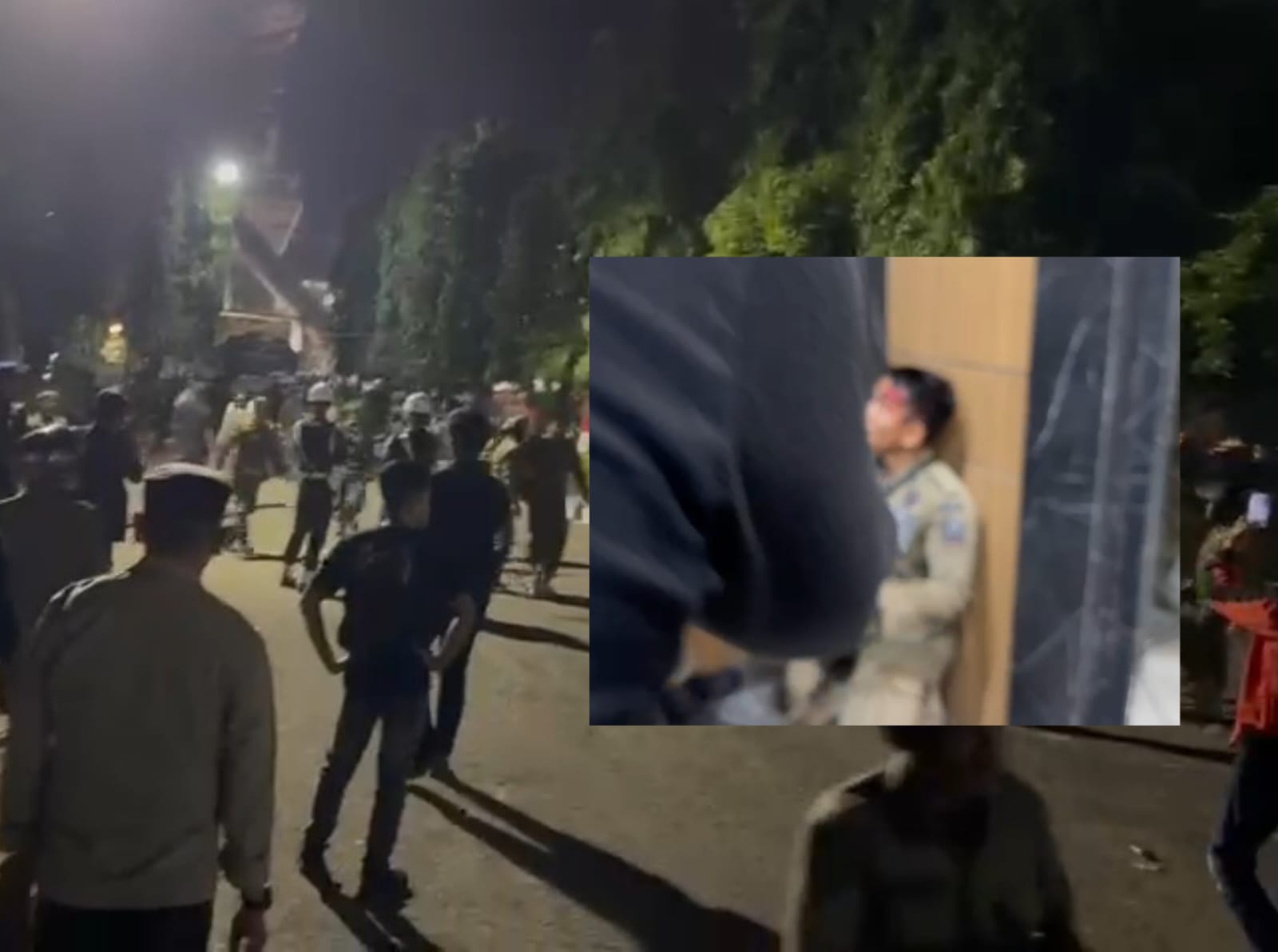 Informasi yang diperoleh, sejumlah petugas satpol pp dan polisi mengalami luka akibat terkena lemparan batu arah massa. Salah satu diantara korban bahkan berlumuran.