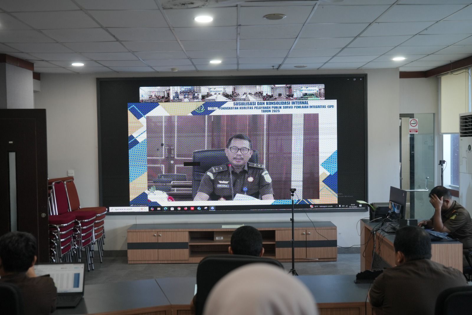 Rastranews.id, Makassar – Wakajati Sulsel, Robert M. Tacoy, didampingi Asisten Pembinaan (Asbin) Abdillah, bersama jajaran Bidang Pengawasan, mengikuti secara daring Sosialisasi dan Konsolidasi Internal dalam Peningkatan Kualitas Pelayanan Publik melalui Survei Penilaian Integritas (SPI) Tahun 2025, di Kejati Sulsel, Senin (13/10/2025).