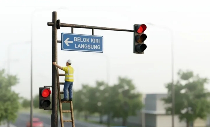 Apakah bisa belok langsung atau harus menunggu lampu lalu lintas hingga warna hijau menyala.