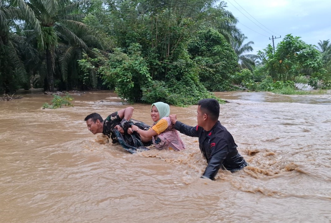 Prajurit Kodam IM terlibat langsung melakukan evakuasi warga yang terjebak banjir dan longsor, termasuk menolong lansia, anak-anak, perempuan, dan warga dengan kebutuhan khusus yang tidak mampu menyelamatkan diri.