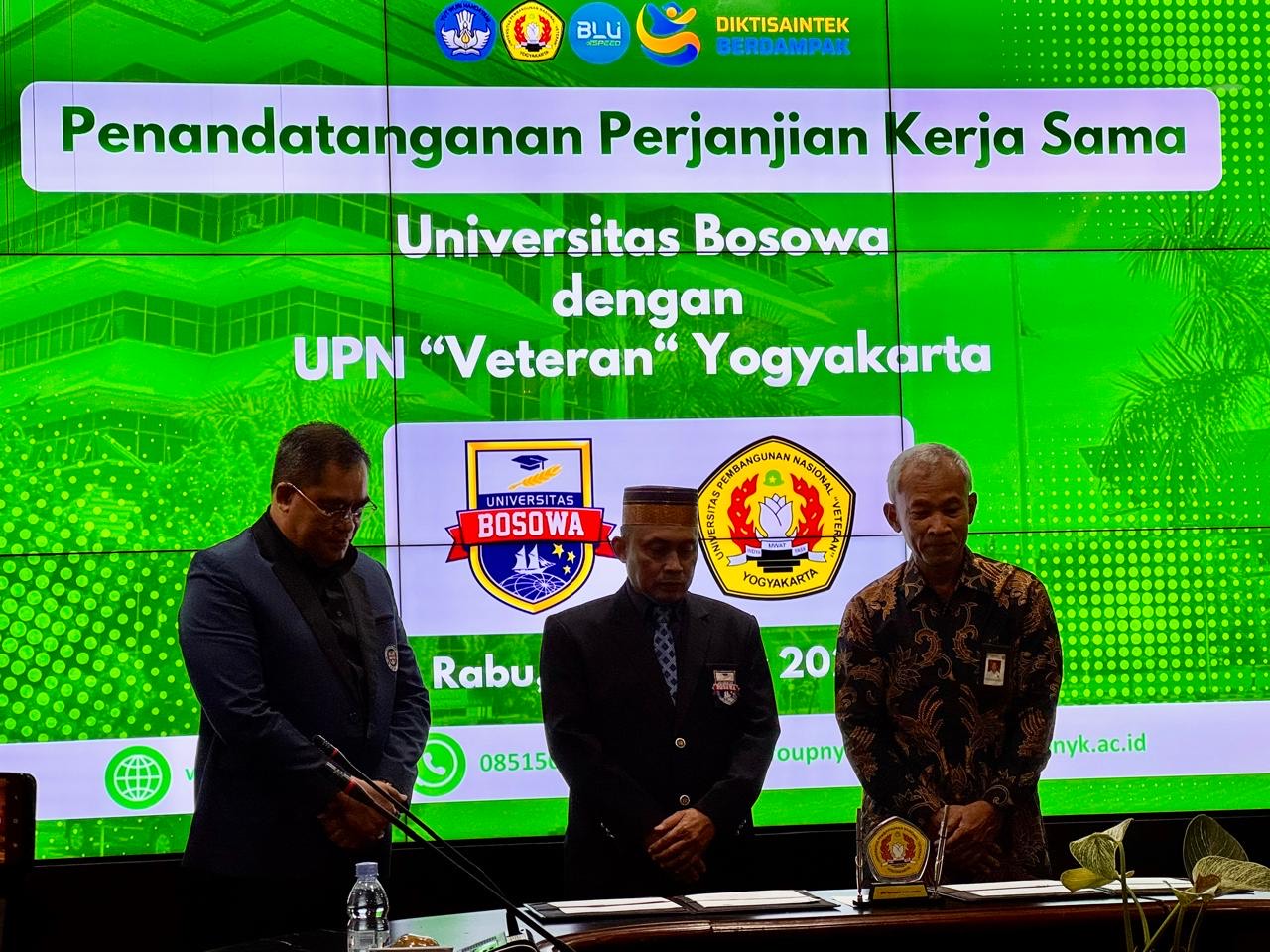 Penandatanganan perjanjian kerja sama ini, dilaksanakan pada Rabu (14/10/2025) di Kampus UPN “Veteran” Yogyakarta dihadiri oleh Rektor Unibos dan Rektor UPN Veteran Yogyakarta beserta jajaran dekan, dosen, dan tenaga kependidikan kedua universitas.